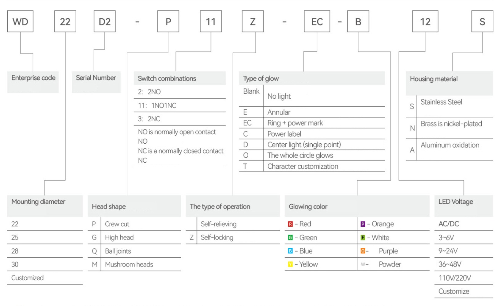 Wandu Electric produce principalmente diversos productos de interruptores, como interruptores de botón de metal, luces indicadoras de metal, interruptores de parada de emergencia de metal, perillas, llaves, zumbadores, etc. Sus productos de interruptores tienen las características de impermeables y a prueba de polvo, y son los únicos en la industria que han pasado de forma independiente la prueba de estanqueidad para interruptores de botón de metal, lo que garantiza la confiabilidad del producto en diversos entornos. La empresa proporciona interruptores y luces indicadoras con varios diámetros de instalación, incluidas series convencionales, series de alta corriente, series impermeables, y pueden personalizarse y desarrollarse según las necesidades del cliente.