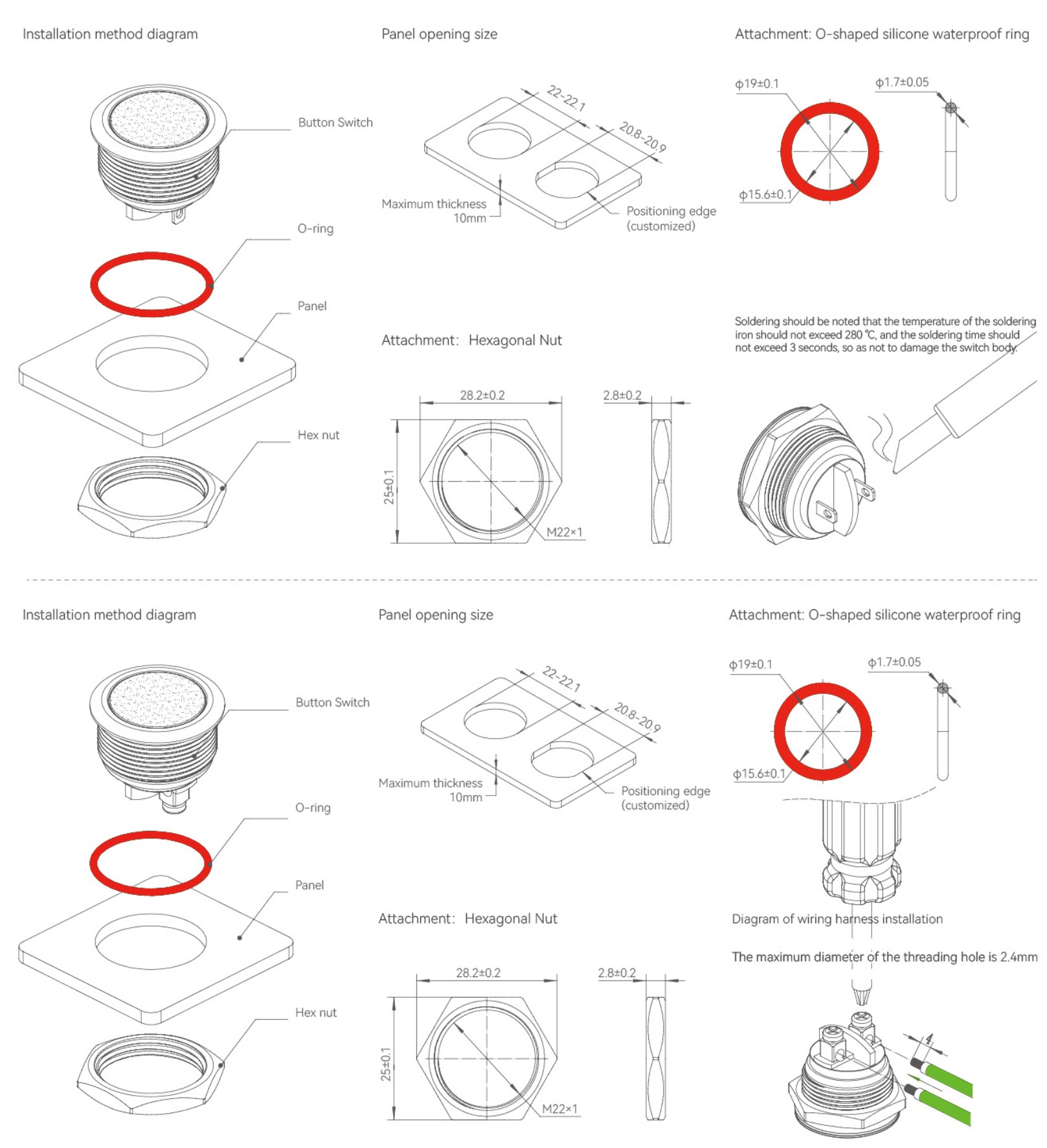 Los tamaños de orificios de instalación comúnmente utilizados están completos;