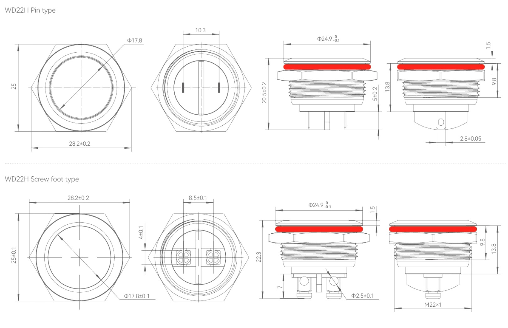 •             WD22H-P0-S-1 Interruptores de botón metálicos WD22H-P0-S-1