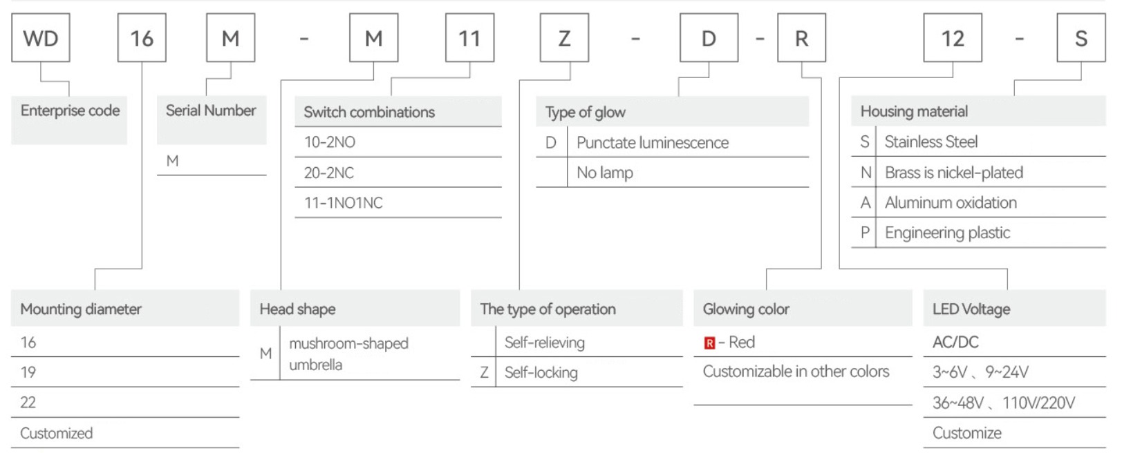 Wandu Electric produce principalmente diversos productos de interruptores, como interruptores de botón de metal, luces indicadoras de metal, interruptores de parada de emergencia de metal, perillas, llaves, zumbadores, etc. Sus productos de interruptores tienen las características de impermeables y a prueba de polvo, y son los únicos en la industria que han pasado de forma independiente la prueba de estanqueidad para interruptores de botón de metal, lo que garantiza la confiabilidad del producto en diversos entornos. La empresa proporciona interruptores y luces indicadoras con varios diámetros de instalación, incluidas series convencionales, series de alta corriente, series impermeables, y pueden personalizarse y desarrollarse según las necesidades del cliente.